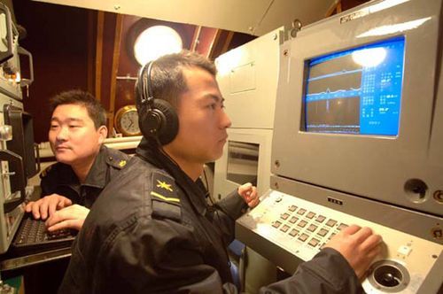 資料圖:中國潛艇內(nèi)部的聲納戰(zhàn)位訓(xùn)練。