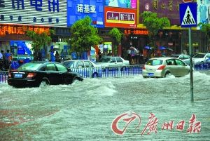 昨日,廣州黑云壓城,廣州市三防辦在18時20分掛起廣州市區暴雨黃色預警信號,18時50分更是發出廣州市區雷雨大風藍色預警信號。記者隨即巡城發現,天河區海珠區雨點稀疏,沒有發生嚴重的內澇;下雨的區域主要集中在荔灣區和白云區,荔灣區一度刮起大風,有綠化樹被風吹斷;白云區則電閃雷鳴,形勢嚇人。幸運的是,昨日大雨并未像去年5月7日的暴雨造成城區嚴重的內澇。