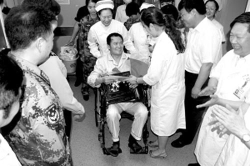 “希望你們繼續發揚這種不顧個人安危、奮力搶救的奉獻精神,推動全區更多的群眾和你們一樣,在新時期更好地支持國防建設、部隊建設,為廣西經濟社會又好又快發展營造良好的軍地軍民團結環境!”臨別時,郭聲琨緊緊地握住蘭紹金的雙手叮囑道。