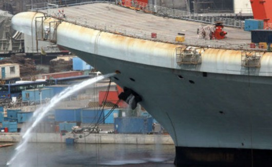 資料圖:進(jìn)行排水的中國瓦良格號(hào)航母。