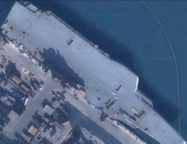 人民網(wǎng)資料圖:衛(wèi)星拍攝的“瓦良格”號航母圖片。
