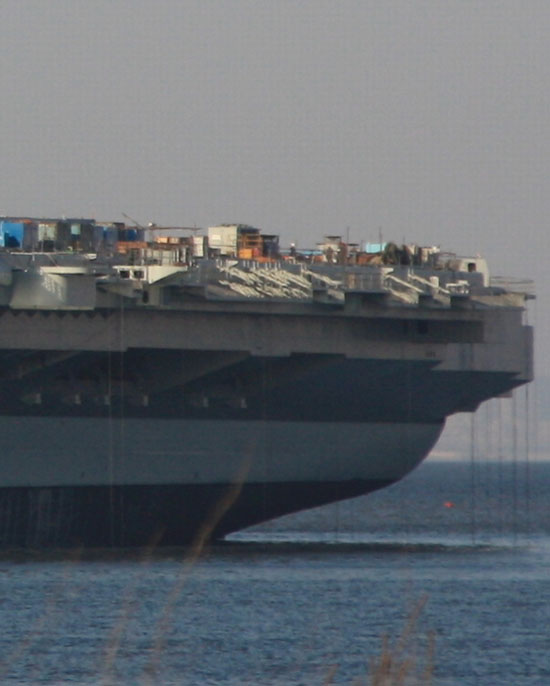千龍網資料圖:改裝中的“瓦良格”號航母艦艉特寫。