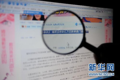 2月16日,網絡上刊登出江西鄱陽縣財政局工作人員貪污公款的帖子。新華社記者周密攝