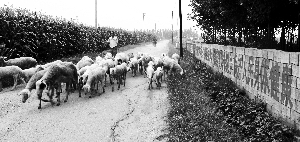 8月5日,盧龍縣蛤泊鄉(xiāng)的鄉(xiāng)村公路上,一農(nóng)戶趕著羊群回家。本報記者 孟祥超 攝