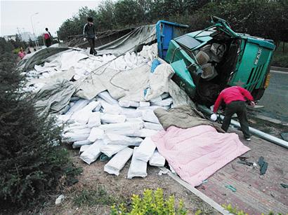 青島一轎車并道擠翻斯太爾 昨日下午5時左右,司機王師傅開著一輛斯太爾拖掛貨車從青島八號碼頭拉上40噸冰凍三文魚駛入環灣大道,左側一輛小轎車突然并道,逼得他趕緊踩下剎車,卻因為巨大的慣性導致貨車側翻,車上拉的冷凍三文魚撒了一地,4人被困車上,其中司機雙腿骨折,另外一人右臂骨折。 百萬元三文魚撒了一路 “八號碼頭西門剛剛上環灣大道的彎道位 記者聞訊趕到現場看到,一輛綠色斯太爾拖掛貨車右側著地側翻在路邊,地上有一道長約10米的剎車痕跡,兩根路邊的燈桿被撞得連根拔起,大批用白色編織袋包裝的貨物撒在人行道上。“我們拉的這是三文魚,剛剛從青島港上卸下這一百多萬元的貨,準備送往煙臺,可是還沒走多遠就出事了。 ”該貨車的隨車人員張師傅告訴記者。 小車并道將大貨“擠倒” 記者了解到,出事后張師傅立刻給老板打了個電話。 “當時我們正常行駛,從左邊竄出來一輛小轎車到我們前面并道,司機踩了一腳剎車,結果慣性太大就沖著右邊倒下去了。 ”張師傅當時坐在駕駛室的中間,眼睜睜看著撞倒了兩根路燈然后側翻在地,而自己也被司機老王壓在身下。 “那個小車我們也沒記清車號,惹了禍之后就跑了。”張師傅對記者說。 民警從駕駛室救出四人 張師傅告訴記者,事發后他眼前是被撞碎的擋風玻璃和倒下的路燈桿,自己也像漢堡包一樣被夾住動彈不得,只好待在車里等待救援。“最早到的是三名民警,其中兩名民警將傷勢較輕的三人從擋風玻璃處救出來,司機兩條腿被夾住動不了。 ”民警們一邊實施救援,一邊指揮交通,給120救護車讓出車道,大約5分鐘后救護車趕到,醫護人員對司機進行了簡單包扎,然后與民警一起拉開車頭,將司機救出來與另外一名傷者一起送往骨傷醫院接受治療。 晚6時許,貨主趕到現場后簡單詢問了一下情況,從青島港調了兩輛拖掛車準備將撒落的貨物重新裝卸送往煙臺。貨主告訴記者,這些貨是從俄羅斯進口的三文魚,一件價值700余元,整車貨價值在百萬元以上。 “我們的車拉了40噸三文魚,要是因為下大雨把魚給澆化了,我的損失可就大了。 ”記者了解到,這輛貨車的核定載重應為46噸,車禍發生后牽引鉤并沒有發生斷裂,發動機也沒有損壞,僅僅是車頭變形、擋風玻璃破碎。目前,兩名傷者正在醫院接受治療。(記者 張勃) |
