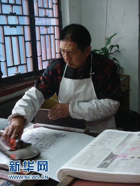 楊家埠木版年畫被列入國家非物質文化遺產名錄,圖為年畫藝人在制作年畫。