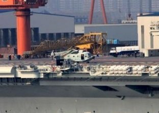 資料圖:網(wǎng)絡(luò)上的直八系留在中國航母平臺的照片