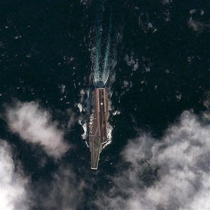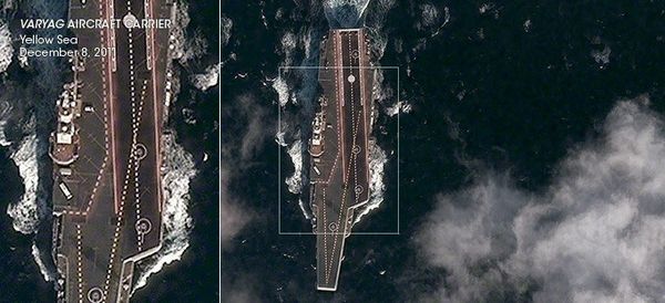 數字地球公司稱這艘航母出現在其極軌衛星12月8日從450公里高空拍攝到的一張充滿云團的照片上。該公司分析中心主管斯蒂芬·伍德說,航母是通過 “衛星圖像加上互聯網上的資料以及地形的結合”被發現的,但“最后還是要靠人來發現”。
