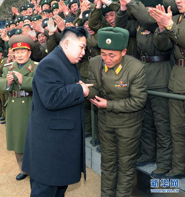 朝中社1月1日提供的照片顯示,朝鮮人民軍最高司令官,朝鮮黨、國家和軍隊的最高領導人金正恩(前左)1月1日視察了朝鮮人民軍第105坦克師,向人民軍官兵致以新年祝賀。這是金正恩就任朝鮮人民軍最高司令官之后首次視察人民軍部隊。圖片來源:新華網