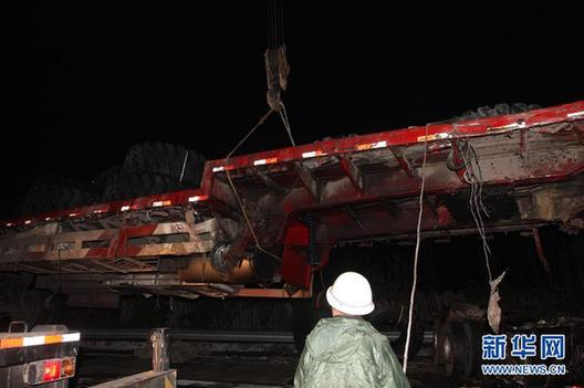 1月3日,救援人員在滬昆高速湖南懷化市中方縣境內(K1431處)路段交通事故現場進行救援。當日上午6時45分,上海至昆明的滬昆高速湖南中方縣境內(K1431處)路段發生一起交通事故,目前已造成13人遇難,其中9人當場死亡,送醫院途中死亡4人,9人重傷,32人輕傷。新華社發(郭國權攝)