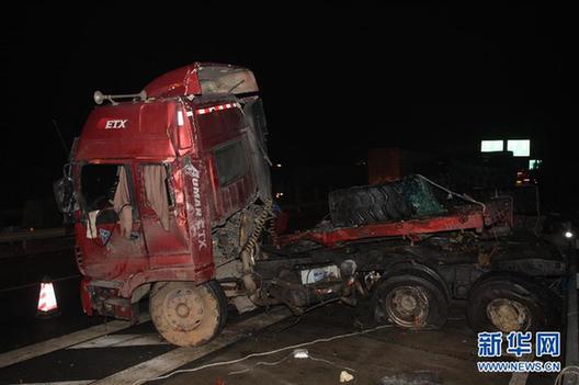 1月3日拍攝的滬昆高速湖南懷化市中方縣境內(K1431處)路段交通事故現場。新華社發(郭國權 攝)