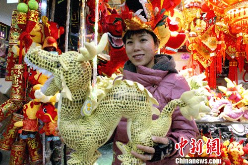 為了迎接即將到來的中國龍年新年,北京到處洋溢著歡樂的迎新氣氛。1月5日,商家布置各種龍年賀卡、對聯、大紅燈籠等年貨紅火,備受消費者青睞。中新社發張勤 攝