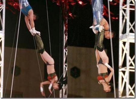 鄭希怡在參加演出《歡樂滿東華》時表演空中飛人,誰料由于搭檔錢嘉樂配合失誤意外扯掉了鄭希怡的褲子,當眾露出黑色T-back,震驚全場。