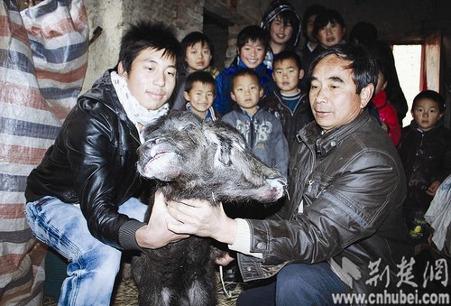 27歲母水牛產(chǎn)下雙頭犢 頭太重?zé)o法正常吃奶 楚天都市報(bào)訊(記者 王進(jìn)良 特約記者 杜青 通訊員 宋俊初)一頭剛出生的水牛犢,竟然長(zhǎng)了兩個(gè)腦袋。前日,記者在孝昌縣季店鄉(xiāng)聯(lián)合村村民姚家華家,見(jiàn)到這樣一頭出生不久的“怪牛”。 這頭剛出生兩天的黑牛犢,毛色光鮮,兩個(gè)腦袋呈“丫”字型,兩張嘴巴也比較完整,每個(gè)小腦袋上都長(zhǎng)著兩只眼睛。最奇特的是,兩個(gè)腦袋左右各長(zhǎng)一只耳朵,中間“共用”一只,共有三只耳朵,讓人看了感覺(jué)有些怪怪的。 姚家華介紹,這頭牛犢剛出生時(shí),因?yàn)轭^太重了,不能正常站立,無(wú)法正常吃奶,家里人只能用奶瓶裝牛奶喂它,而每當(dāng)向它這邊喂奶時(shí),牛奶往往會(huì)從另一邊的嘴里滲出。27歲的母牛先后產(chǎn)下過(guò)17只牛犢,之前并無(wú)異常。 據(jù)孝昌縣畜牧局工作人員介紹,“雙頭牛”是胚胎發(fā)育畸形而導(dǎo)致的連體牛,出現(xiàn)這種原因很可能與牛主人對(duì)母牛的放養(yǎng)習(xí)慣有關(guān),應(yīng)該是母牛懷孕期間營(yíng)養(yǎng)不足或者是吃到不健康植物所致。這種牛犢很難長(zhǎng)大。