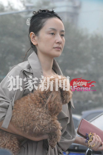 幾分鐘后一位花白頭發(fā)的老大爺牽著一只漂亮的卷毛狗走到孫寧面前,老人接過行李車,小狗則對孫寧又舔又親。孫寧一把抱起小狗,與那位老人親熱地說著話向機(jī)場車庫走去,在電梯里孫寧蹲在地上,整理行李箱。