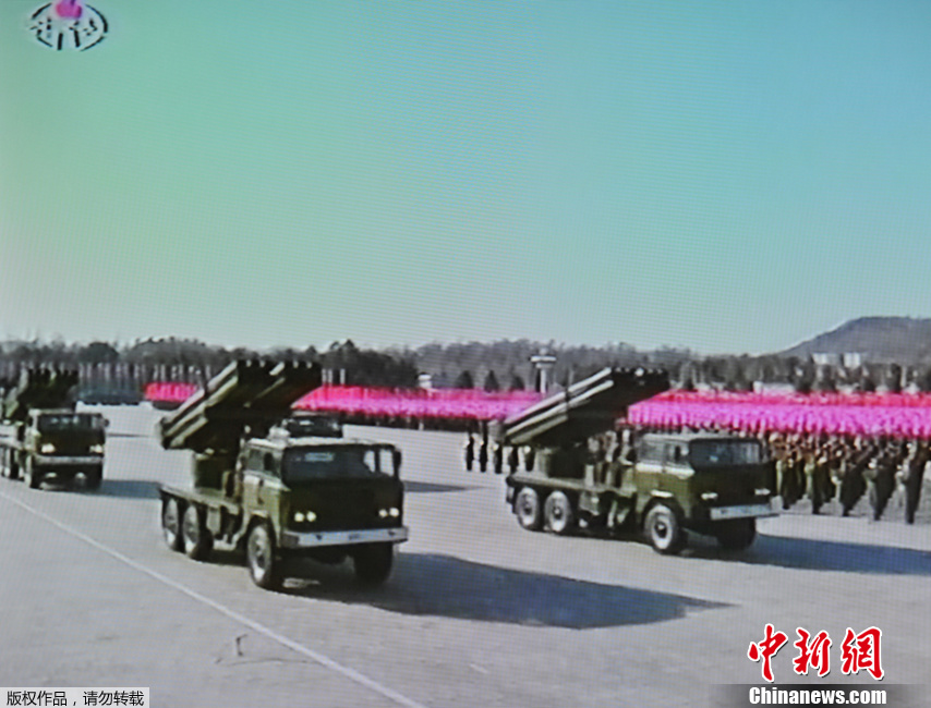 2月16日,朝鮮舉行盛大的三軍閱兵儀式,紀念金正日誕辰70周年,并公布了命名錦繡山紀念宮為“錦繡山太陽宮”的共同決議。(視頻截圖)