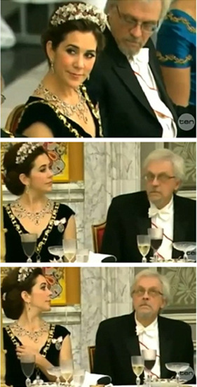 芬蘭前女總統丈夫阿拉耶爾維偷瞄丹麥王妃胸部,被發現后抬頭向上看,模樣頗顯尷尬。 中新網2月22日電 據外媒22日報道,芬蘭前女總統哈洛寧的丈夫阿拉耶爾維在與丹麥王室國宴時,偷窺丹麥王妃瑪麗的胸部。沒想到這一動作被拍下來上傳至網上,引發萬人點擊觀看。 據悉,丹麥女王瑪格麗特二世上月宴請外國賓客參加本國國宴。當時,丹麥王妃瑪麗身著低胸晚禮服坐在阿拉耶爾維旁。不料阿拉耶爾維在趁瑪麗將頭轉向另一邊時,偷偷打量她。 在瑪麗王妃轉過頭時,阿拉耶爾維深覺尷尬,立即抬頭向上望,試圖掩飾自己的行為。而瑪麗王妃雖然知道被偷窺,并沒有顯出不悅之色,而是鎮定地假裝整理項鏈,并順勢遮掩住胸部。 這一片段上傳至網絡后立即引起熱議,有網友評論稱,看來總統丈夫也是“普通人”。 |