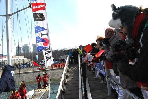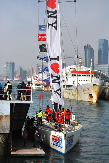 這是青島這座城市第四次迎來克利伯船隊,岸上等候多時的人們對歡迎水手顯然駕輕就熟。激情開啟的香檳酒,中國特色的舞獅表演,美味的冰糖葫蘆,歡迎儀式簡約而隆重。