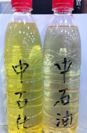 “熄火門”事件很快成為網友討論熱點,有網友貼出中石化和中石油兩家公司93號汽油的照片圖,討論為何同為93#汽油,但顏色卻有差異。