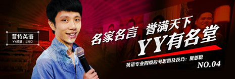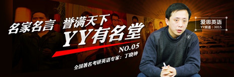 (圖4:丁曉鐘) 姓名:丁曉鐘 簡介: 全國著名考研英語、四六級輔導(dǎo)專家,點點英語首席主講,新浪、搜狐、網(wǎng)易、騰訊四大門戶網(wǎng)站考研英語頻道的長期特邀名師,國內(nèi)多家權(quán)威考研輔導(dǎo)機構(gòu)首席主講。輔導(dǎo)過幾乎所有國內(nèi)外英語考試,成績顯著,對命題規(guī)律了如指掌,成功破解考研英語命題密碼,連續(xù)四年考后第一時間公布的參考答案全對。其創(chuàng)始和推廣的“閱讀超精讀”、“詞匯超鏈接”、“作文閃光點”、“外刊精講”等學(xué)習(xí)輔導(dǎo)理念和教學(xué)內(nèi)容方法已成為考驗必勝的法寶。至今輔導(dǎo)學(xué)生超過五十萬人,通過網(wǎng)絡(luò)和其它途徑影響的考生數(shù)以百萬計。國內(nèi)英美外刊研究界泰斗式人物。