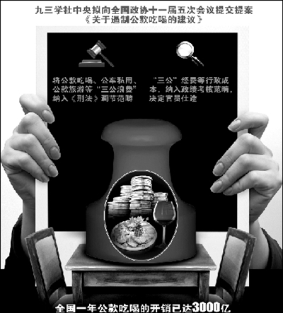 據(jù)人民日?qǐng)?bào)報(bào)道,公款吃喝開(kāi)支1989年為370億元,2005年突破3000億元大關(guān)。對(duì)此,馬馼說(shuō)