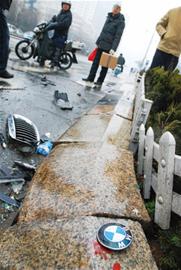 ![]() ????一輛黑色寶馬車撞上出租車后,迅速駛離現場,導致出租車上兩名乘客以及司機受傷。昨天下午,山東路和江西路路口發生車禍,現場散落的寶馬車前車架顯示,這輛車的牌照是“浙B888Q8”。目前警方已介入調查。 ????出租車被撞上等待區 ????昨天下午1時左右,記者經江西路行駛到巴黎春天百貨門前時,看到一輛出租車停在行人等候區,旁邊的信號燈桿已經被撞倒,周圍圍滿了行人。記者在現場看到,出租車右側受到猛烈撞擊后嚴重凹陷,車廂內一名男乘客不停地用紙巾擦臉,隨后扔出一團團帶血的紙巾。車外,一名出租車司機正在打電話求救。 ????“太驚險了,要是當時過馬路的人多的話,后果不堪設想!”一名目擊者說,當時路口一輛黑色寶馬車和出租車相撞,隨后出租車被“甩”上了行人等候區,由于慣性太大,把信號燈桿都撞倒了。 ????肇事寶馬“傷勢”不輕 ????幾分鐘后,120急救人員趕到,將一男一女兩名乘客扶上救護車。記者看到,女傷者躺在車上已經昏迷,男傷者面部、雙手都有鮮血。他們隨后被緊急送往401醫院救治。 ????“我當時已經駛過了路口,突然竄出來一輛黑色的寶馬車,直接撞在我的車上了!”出租車司機秦師傅告訴記者,撞車后他努力控制方向,但還是沖上了行人等候區。黑色寶馬車根本沒有停留,直接駛離了現場。由于他受傷較輕,趕緊打電話報警求助。 ????記者在現場看到,寶馬車 “傷勢”也不輕,車標、前車架散落了一地。記者仔細查看發現,寶馬車的車牌號是 “浙B888Q8”?!艾F在交警嚴打肇事逃逸,寶馬車敢頂風而上,真是太大膽了。”現場一名目擊者說,周邊路口有很多監控探頭,應該能查到監控資料。 ????警方表示將盡快破案 ????隨后,警方趕到現場,但并沒有對事故責任做定性,表示會盡快追查寶馬車。昨晚,記者聯系到市南交警大隊進一步了解情況,負責宣傳的一名負責人表示,根據警方規定,“沒終結案件不公開辦案細節”,所以案件情況不便透露。 ????不過,一位不愿透露姓名的交警分析認為,破案率很高。“目前市區道路的監控系統已經很完善了,只要是有牌的車,幾乎都能查到。”該人士透露,前期有不掛牌的肇事逃逸案件,最終也都告破了。(記者 劉文劍) |