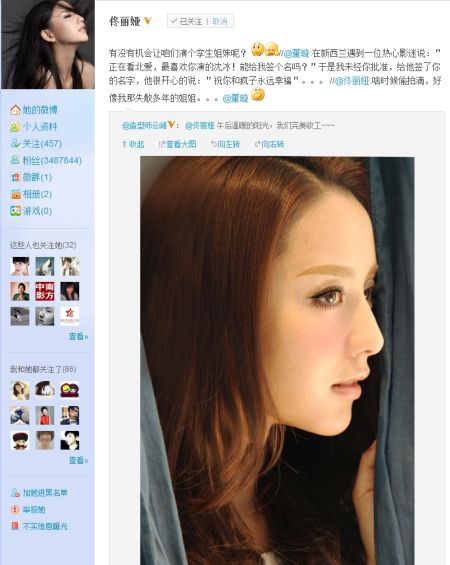 2012年3月6日19點23分,董璇發(fā)布微博稱自己在新西蘭遇到一位熱心影迷,錯把她當成佟麗婭,向她索要簽名并祝她和陳思成永遠幸福。
