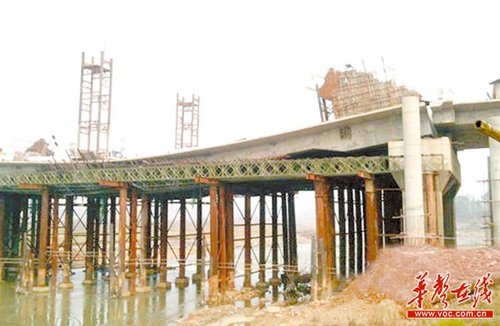 施工單位亂拆橋底支架釀禍 據現場工友說,“事發時,我們正在工地板房宿舍中看電視,聽到外面‘轟’的一聲巨響,我走出一看,黑漆漆的,什么也沒看到。”今天早上,就有幾名工友大喊“橋斷了”。他們分析,事故原因可能是施工程序有問題,過早拆除了腳手架。 事故發生后,婁底市委市政府高度重視,當即作了相關批示并要求對全市在建工地進行全面檢查。婁底市城建投的肖總告訴記者,婁底三大橋垮塌事故初步估計損失在300萬元左右。當地建設、設計、施工、監理等相關單位和部門已成立事故調查小組,展開相關工作。初步調查結果稱,該事故為一般工程質量事故,發生原因主要是施工單位違章作業,擅自拆除橋底部分支架,導致橋面施工荷載過重所致。 鏈接 婁底三大橋又稱漣水河大橋,2008年開工建設,連續跨越滬昆鐵路和漣水河,是未來連接婁底主城區和開發區的重要橋梁,橋全長426米,橋寬32米,雙向六車道,總投資1.08億元,預計2012年底通車。該橋由婁底市城市建設投資集團有限公司建設,中鐵第五勘察設計院集團有限公司設計,湖南和天工程項目管理有限公司監理,中國市政建設集團股份有限公司負責施工。 |
