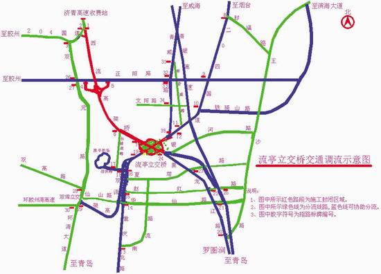 城陽公路部門工作人員說,流亭立交封閉前,工作人員已在周邊主要路口設置了40余塊交通指示牌,一些平時交通流量較大或容易引起擁堵的路段,也都設立了繞道提示牌。