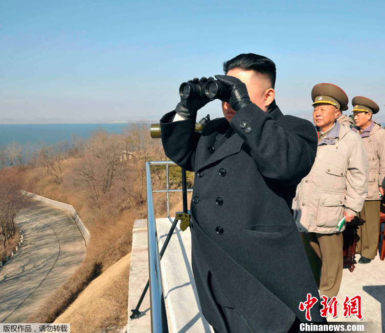 這張朝鮮中央通訊社3月15日提供的照片顯示,朝鮮最高領(lǐng)導(dǎo)人金正恩(前)近日指導(dǎo)了朝鮮人民軍陸海空三軍聯(lián)合打擊訓(xùn)練。