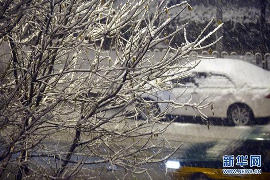 3月18日凌晨雪景。 3月17日深夜至18日凌晨,北京市區突迎降雪,京城大地一派銀裝素裹。