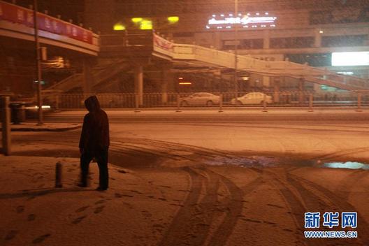 3月18日凌晨,一位北京市民冒雪出行。 3月17日深夜至18日凌晨,北京意外地迎來(lái)一場(chǎng)降雪。 新華社發(fā)(張可任 攝)