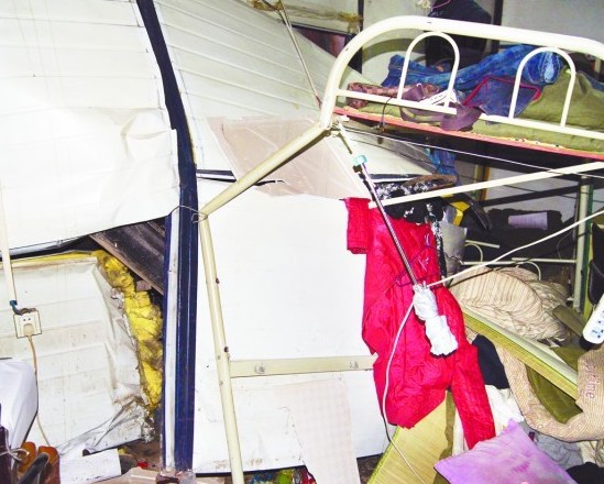 ![]() 被撞壞的宿舍內部。 ????3月18日凌晨3時許,一輛黑色豐田轎車撞穿路邊地鐵工地的隔離鐵板沖進工人宿舍,一名工人從上鋪摔下受傷,所幸傷勢不重。 ????“這個車直接撞進我們宿舍里來了,我們都沒反應過來。”3月18日凌晨3時許,一輛在江西路上自西向東行駛的黑色豐田轎車突然失控,一頭撞進路邊一處地鐵工地宿舍內。凌晨3時20分許,記者來到事發現場,看到這輛黑色轎車的大半車體已經扎進工地內部工人的板房宿舍中,七八名衣衫不整的地鐵工人正圍著轎車討論,而三名交警正在現場維持秩序。在工地內部,記者看到工人的板房宿舍共有兩層,其中一樓最西處一間房屋因為汽車的撞擊已經嚴重變形無法進入,而通向二樓的戶外樓梯也被撞斷。 ????回憶起事發的過程,一名工人告訴記者:“就跟地震一樣,我什么都不知道就從床上摔下來了。”他說當時大家正睡得香,汽車突然沖進來,他們根本不可能做出反應,直接就從床上掉了下來。“我一個工友已經被送到醫院了,他是從上鋪摔下來的。”他還告訴記者,他們辦公用的電腦、對講機也被撞壞了。 ????“我們也不知道司機去哪了。”問到肇事司機的去向,工人們告訴記者,汽車剛撞進來不久,司機就從車后門離開現場了。記者看到事故中汽車的損傷較重,車頭保險杠已經脫落,但車內的安全氣囊并沒有打開,由于汽車被卡住,兩側的前車門都已經無法打開,交警只能從汽車后門進入車內查看情況。目睹整個事故發生過程的葉先生告訴記者,他當時看到這輛汽車不知什么原因直接扎進地鐵工地宿舍內,不久就有一名男子從汽車后門下車,離開了現場。而其他幾名工人則告訴記者,當時車上可能有兩個人,但他們并不知道這兩人的去向。 ????“司機去醫院了,我們一會要去調查。”現場一位交警告訴記者,現在無法鑒定事故原因。凌晨4時許,交警試圖將汽車從工地里拖出,無奈由于車體卡得太緊幾次嘗試都沒有成功,直到清晨6時許汽車才被拖出。(記者 孫英男) |