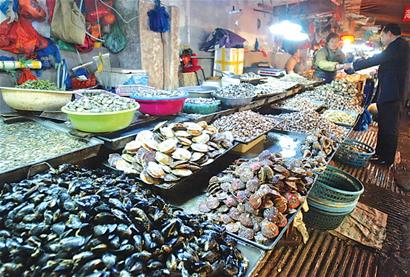 ????蛤蜊必稱“紅島的”,海鮮必稱“本地海捕”,近日,記者探訪青島市場發(fā)現(xiàn),市場上的不少水產(chǎn)流行“傍”本地貨,不僅品種少,價格也較往年高了不少。水產(chǎn)專家告訴記者,目前市場上七成以上蛤蜊來自遼寧,紅島蛤蜊只有少量上市,而且個頭較小。海魚則有八成以上是南方養(yǎng)殖貨,本地養(yǎng)殖為降低成本養(yǎng)殖魚類大多在年前就銷售一空。 ????黃姑魚70元/斤,黑頭魚40元/斤,牙鲆魚40元/斤,螃蟹90元/斤,對蝦50-120元/斤……昨天上午,記者來到團島農(nóng)貿(mào)市場,不少海鮮的價格讓市民直喊吃不起。“今年海鮮就是貴,比往年能貴兩成。”青島市漁港管理站站長汪洪山感慨道,目前處于漁業(yè)養(yǎng)殖淡季,所以價格較高。 ????“正宗紅島蛤蜊5元/斤了! ”市場上的蛤蜊都稱來自紅島。紅島蛤蜊協(xié)會會長趙宗偉告訴記者,一般從4月份開始紅島蛤蜊才開始上市,目前蛤蜊還比較小,1斤大約有80-90粒,開挖量非常小,碼頭的批發(fā)價為4元/斤。據(jù)悉,目前青島市場上的蛤蜊遼寧產(chǎn)的占了70%-80%。 ????另外,青島市漁港管理站站長汪洪山分析認為,青島的養(yǎng)殖魚一般到了深秋或者初冬就全部銷售出去,目前市場上80%的養(yǎng)殖魚來自南方。市場上很少見帶魚、鲅魚等魚類的身影,預計再過半個月南方的海捕海鮮就會大批運到青島,每年4-5月份,南方鲅魚、魚捕撈旺季到來,從福建附近海域捕撈的海鮮很快就會空運過來。(記者 宋曉華) |