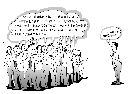 近日,新鄭市不少公職人員向商報爆料稱,該市建生態廊道,每人至少集資1萬 有人稱,政府因社會公益項目貸款集資可以理解,但要遵循自愿原則 不少人表示不滿:哪來的錢集資啊,可憐的上班娃們 ????政府辦、宣傳部稱沒這事兒教育部門稱確有此事,但并非強行集資:哪個領導也不會干這傻事兒 ????近日,新鄭市直機關、事業單位員工不斷向河南商報爆料,稱該市建生態廊道,公職人員都有集資任務。普通職工少則1萬元,多則數萬元。 昨天下午,新鄭市政府辦、市委宣傳部相關負責人均表示:沒聽說過政府集資的事兒。 而該市教體局則證實,確有集資這事兒,但并非強制性要求。 爆料 政府建生態廊道 市直機關每人交3萬 昨天,新鄭某高中一位不愿透露姓名的教師說,校領導在例會上宣布,新鄭修路需26億資金,該校有150萬元任務,每位教師在28日上午11點前至少交1萬,多則不限。“正科交10萬元,副科交5萬元,教體局副局長也得交10萬元。” 消息公布后,很多人表示不能接受。 “這錢是捐款還是借款?如果是借款,什么時候還?”一位教師說,學校負責人只提到,籌集1萬元錢,1年期利息每月1分2,2年期利息每月1分3。 該校一位負責人證實,籌款確有其事,是上級部門口頭通知的,沒正式文件。全市公職人員都有任務,而且必須得交,不清楚這筆錢以后退不退。 新鄭市某市直單位一職工稱,市直各單位員工每人要集資3萬元,聽說是為了鄭新快速路兩側的生態廊道建設。 3月25日,新鄭貼吧內,很多網友就籌款一事,傾吐心中不滿。網友“頭發快掉光”說,全市單位集資啦,硬性規定,職工必須交3萬元~5萬元。 網友“隨園的主人”說:剛上班一個月,還沒有領到一毛錢,哪來的錢集資啊,一人3萬,玩人啊,可憐的上班娃們。 鄭州市網絡問政平臺上,網友“政府關注者”說,“政府因為社會公益項目貸款集資,可以理解,但要遵循自愿原則。政府向市直單位領導強壓任務,領導又向普通職工強壓,每人最低5萬,我們單位領導都蒙了,連自籌的員工工資都停發了。” 另據了解,新鄭市直機關、事業單位集資款,統一交到新鄭市農村商業銀行股份有限公司營業部,賬戶名稱為新鄭市政通投資控股有限公司。 回應 政府辦說沒這事兒,教體局稱有集資但是自愿的 對于讀者和網友投訴的“強行集資”一事兒,新鄭方面予以否認。 “沒聽說過啊!不會有這事兒吧?”昨天下午,新鄭市政府辦主任張書謙說。不過,他又透露,其孩子在新鄭一所中學上班,“昨天回家也聽孩子說集資這事兒了”。 新鄭市教體局局長陳文彬說,這不是捐款,而是政府吸納資金,利息比銀行高,“如果有錢且愿意的話,可以借給政府,沒錢就算了。” “文明發展到今天,哪一級、哪個領導也不會干這個傻事兒!”陳文彬告訴記者,教體局絕對不可能下達強行集資的任務。 新鄭市教體局常務副局長柳廣義說,籌集資金是財政部門要求的,用于新鄭部分道路的廊道建設,完全是自覺自愿行為。 隨后,記者致電新鄭市財政局求證此事,對方掛掉了電話。新鄭市委宣傳部副部長梁國定則表示,他還沒聽說這回事。 |