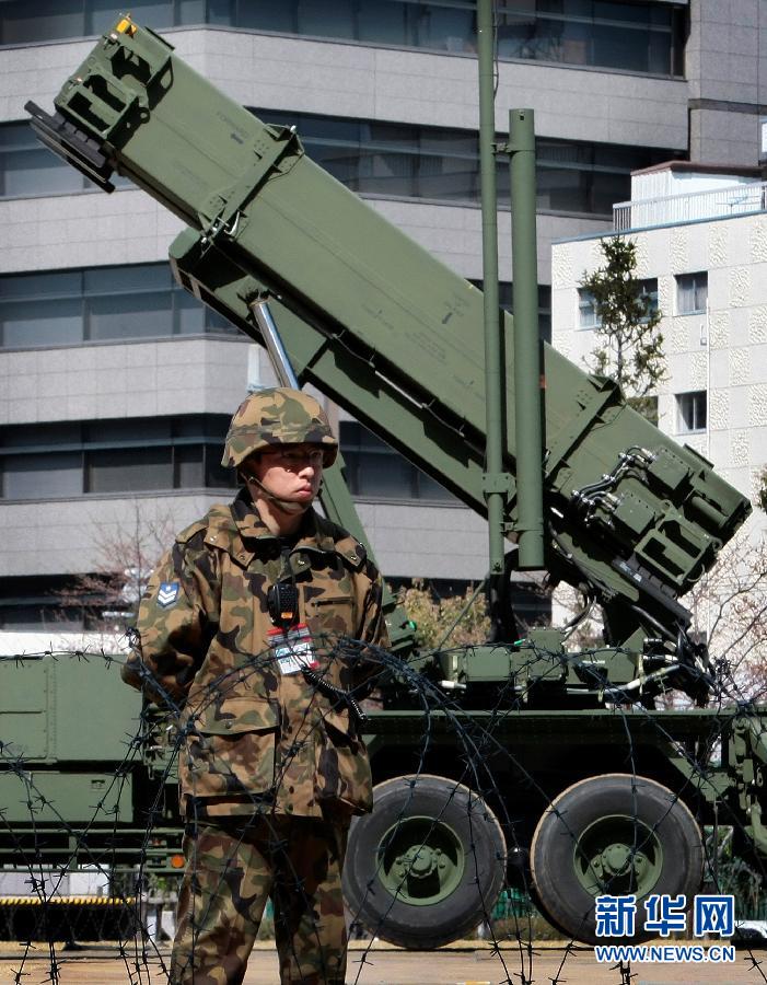 3月30日,針對朝鮮運載火箭可能經過日本上空或在日本境內墜落的情況,日本防衛大臣田中直紀向自衛隊下達了用彈道導彈防御系統進行攔截的命令。這是2009年3月29日在日本東京拍攝的負責攔截任務的“愛國者3”型導彈。據日本媒體報道,自衛隊將在沖繩本島、沖繩縣石垣島和宮古島及首都東京部署“愛國者3”型導彈,在沖繩附近的東海、沖繩近海和日本海部署載有“標準3”型海基攔截導彈的宙斯盾戰艦。新華社/美聯