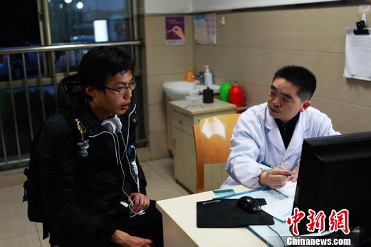 一位右額受輕傷的上海交大學生在咨詢醫(yī)生。李克祥攝