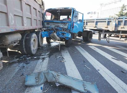 青島瑞昌路四車連撞雪鐵龍報廢 車禍堵路三小時 昨日下午2時40分許,一輛雪鐵龍轎車剛剛從萬安路方向拐出準備駛上瑞昌路時,不慎與一輛半掛車頂在了一起。半掛車司機為了避免頂翻轎車猛打方向,結果不慎與另一輛迎面駛來的自卸車相撞,在巨大的沖擊力下,兩車的“頸椎”不幸當場雙雙折斷。而自卸車由于剎車不及,又撞上了路邊停著的另外一輛車。記者現場了解到,這起車禍造成環灣大道瑞昌路出口附近堵路三小時。 報料 下橋口四車連撞 “在瑞昌路這里有四輛車撞在一起了,三輛大車把中間一輛雪鐵龍轎車都給擠廢了!”接到市民李女士的報料電話后,記者迅速趕往瑞昌路萬安路路口看見,一輛黑色的雪鐵龍轎車停在路中間,左側車頭在事故中被撞掉一大塊,前擋風玻璃也碎成了一地“鉆石”,后方一輛自卸車和一輛半掛車撞在一起。記者看到,半掛車的車頭與車身竟然呈垂直狀扭轉了90度,邊上一輛自卸車打著雙閃停在路邊,左側車頭陷進去了約半米的距離,而駕駛室也被撞得變形了?!斑@輛自卸車還撞了一輛車,那輛車傷得不重,司機過了一會趕到現場,在交警調查完以后開走了。 ”目擊者劉先生對記者說。 現場 兩車撞成“歪脖子” 車禍發生在下午2時40分許,當時劉先生剛從附近的加油站駛出,突然車前方傳來了“轟隆”一聲巨響,一輛準備駛上環灣大道的半掛車與一輛從左側拐出的雪鐵龍撞在了一起,將其前發動機蓋左側削掉了一大半。此時,一輛自卸車正好從半掛車的對面行駛過來,失去方向的半掛車車頭又和自卸車撞在了一起,當場頂在了自卸車車頭和拖斗之間。由于巨大的沖擊力,半掛車的車頭和拖斗之間如骨折一般,“咔嚓”一聲拐成了90度角停在路邊。劉先生開車離開加油站時,發現路邊停著的一輛車被自卸車頂在了尾部。 說法 避轎車急打方向 “我要往環灣大道那邊走來,誰知道開到這里撞上了!”半掛車司機告訴記者,他是沿著瑞昌路向環灣大道一側行駛,當他行駛到瑞昌路和萬安路路口時,一輛黑色轎車左拐出來,眼看兩輛車就要撞到一起,他猛打了一把方向盤躲避,結果還是撞在了一起。 “如果我不打方向盤,我這車這么沉,估計要當場把它(雪鐵龍)頂翻了?!卑霋燔囁緳C告訴記者,半掛車車頭蹭到了轎車的車頭左側后繼續向左偏離,而此時不巧有一輛自卸車沿著瑞昌路向反方向駛來,半掛車一下頂在了自卸車車頭和車斗之間。由于巨大的撞擊,半掛車的車頭扭成了90度后與車身垂直,而自卸車的“關節”也受了重傷。 影響 車禍堵路三小時 昨日下午3時許,在警方結束調查后,拖車趕到現場將雪鐵龍轎車拖走。而由于20余米長的半掛車和10余米長的自卸車都在事故中失去動力而無法駛離。 “半掛車的車頭撞毀了,車頭必須被拖車拖走,還需要調個車頭過來才能將后面的拖斗拖走。”一名交警告訴記者。而記者注意到,自卸車的車頭和車斗中間,機油漏出了20多米長,只要司機坐在車內輕輕發動油門,只見連接軸在不斷轉動,而無法驅動車輪。直至下午5時50分許,維修人員一直在修理兩個“大家伙”,而此時的環灣大道瑞昌路下橋口,至少排起了半公里長的車龍。記者了解到,在事故中,雪鐵龍車、自卸車、半掛車的司機都有輕微的擦傷,并無大礙。 |