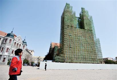 為使天主教堂墻面的水洗沙完全符合建筑原有風貌,施工技術人員足跡踏遍膠東半島,尋找符合現有墻面顏色的沙子。昨日,記者從天主教堂了解到,經過近5個月的施工,天主教堂維修養護施工已進度過半。為使天主教堂修舊如舊,施工方在使用的沙子、瓦片等材料上煞費苦心。據介紹,天主教堂將于6月底施工結束重新開放。 天主教堂穿“綠裝” 昨天上午10時,記者在浙江路的天主教堂看到,包括教堂正面近60米高的兩個塔樓在內,整個天主教堂的主體建筑都被腳手架和綠色的防護網包裹起來,遠遠望去就像一個綠色建筑。教堂內部有許多施工人員正在粉刷、加固墻面和部分建筑構件。據介紹,天主教堂施工從去年11月18日開始。施工首先集中在塔樓后方的穹窿形建筑,由于整個建筑建成時間較長,墻體大面積出現裂紋和墻面空鼓,有的裂紋寬度接近2厘米,施工人員目前已經對這些老化墻體做了修復。 墻面沙粒精挑細選 “現在水洗沙的墻面如何修復還是個難題。”項目施工負責人徐經理稱,天主教堂墻面采用的是水洗沙的工藝,這種技術經過專家研究,已解決了加工工藝,但由于墻面經過近80年風雨,整體呈現出一種古舊顏色,現在的沙子和水泥很難達到這種效果。為使維護后的墻面更貼近原始狀態,技術人員帶著從墻上刮下的沙粒樣本,在膠東半島四處尋找與這種沙粒的顆粒、色彩相近的沙子。“現在已取回四五種樣本,正在進行淘洗、烘烤處理,下一步要做小面積的抹墻實驗,爭取做出來的墻面顏色能和原先的墻面一致。”徐經理說。據介紹,近60米高的塔樓日前剛剛完成腳手架搭建,目前正在等待安監部門驗收。驗收合格后,將首先對樓頂的兩個銅質十字架做維修。據了解,天主教堂這次大修預計投入資金達1000萬元,施工將于6月底結束。(記者 趙健鵬 攝影報道) |