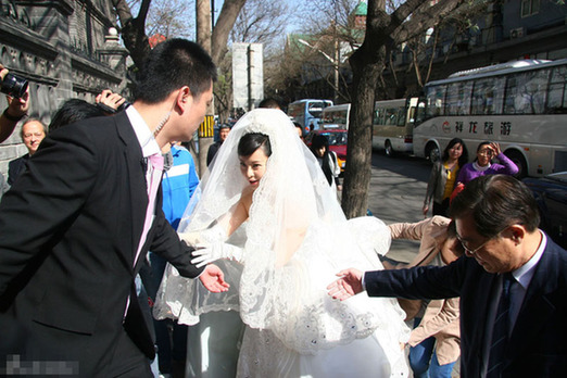 環(huán)球網(wǎng)娛樂2012年4月13日訊 12日下午3時許,北京,演員袁莉和Blaine Grunewald先生(美國)1在北京某教堂舉行婚禮典禮,兩人在現(xiàn)場當眾親吻,十分甜蜜,更遭遇眾人和多家媒體圍觀,十分混亂。