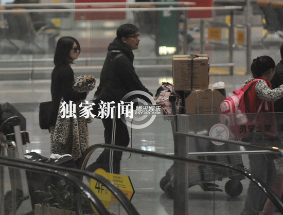 李湘夫婦攜愛女回京 王岳倫當苦力否認離婚(組圖)