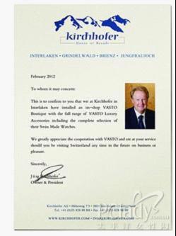 ????????歐洲人很重視信譽,這是奇士霍夫先生對VASTO華斯度精品的推薦。 |
