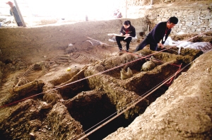 整個春秋古墓發掘現場已出土的文物接近百件 昨日記者獲悉,山東省文物局再次派遣工作組和考古專家奔赴沂水春秋古墓發掘現場,對古墓現階段的發掘進展和出土文物的保護情況進行調研。據悉,沂水春秋古墓目前已經擬申請省級文物保護單位,并初步考慮在原址修建博物館。 1 三個月發掘文物近百件 昨日,記者采訪獲悉,這座古墓位于沂水縣紀王崮天上王城景區內的春秋古墓,是景區工人 根據墓葬殘存部分判斷,墓室殘長28米,寬13.6米,總體平面呈南北向的長方形,南部為槨室,北部為車馬坑。槨室西側和車馬坑東西兩側,保留有二層臺結構。殘存馬車有四輛,中部兩輛遺跡完整,南北端的兩輛遭到破壞。馬車為獨轅車,每輛車有兩匹馬,馬骨保存較好,木質車體腐朽嚴重。在2號車內出土有鼎、鬲、敦三件車載青銅器,這在山東地區屬首次發現。 此外,古墓內還出土了大量隨葬品,其中北邊箱出土的青銅器主要是樂器,南邊箱出土的青銅器主要是禮器,車馬坑里有車、馬及青銅器出土,其他隨葬品還有陶器、玉器、漆木器等。 據了解,截至目前,整個春秋古墓發掘現場已出土的文物接近百件,其中幾件“罕見”的青銅器物件讓考古人員很疑惑出土的一種叫“斤”的青銅器,以往在山東春秋墓中非常少見;一件三角形的大型“戈”,據專家介紹有可能是“鍨”,以往在中原地區都不多見,在山東是首次發現。 2 擬申報省級文物保護單位 據悉,昨日山東省文物局等相關單位和專家再次奔赴春秋古墓發掘現場,對古墓的現階段的發掘進展和出土文物的保護情況進行調研。 隨著發掘工作的不斷深入,目前古墓主墓室內相繼出土的八件以玉器為主的隨葬品已然在清理發掘過程中,其名稱和用途依舊有待定性,昨日,考古隊成員會同省局考古專家在考古現場對已出土文物進行了細致的甄別,相信謎底很快就能解開。 據了解,目前古墓內特別是主棺室里發現的部分玉器依舊難以定性,繼首日發現玉琮后,前日考古人員又清理出了第二件玉琮。為什么主棺室出現了兩件玉琮?它們出現在這里有什么意義?考古人員尚無法解釋。 此外,墓主人遺骸為何遲遲沒有出現?墓主人的頭部到底是朝東還是朝西?一系列的疑問尚待考古專家在進一步的發掘清理中給出答案。 昨日,省內知名考古專家齊聚沂水對目前的考古工作展開座談,記者獲悉,由于這座春秋古墓規格高、出土文物珍貴,擁有較高的歷史、文化價值,目前沂水春秋古墓已計劃申報省級文物保護單位。 3 沂水縣擬原地籌建博物館 沂水縣紀王崮崮頂發掘出約2600年前的國君級古墓在我省考古界及沂水當地引起震動,記者日前采訪有關部門時獲悉,沂水縣有關部門擬在發掘原地籌建博物館,目前正著手邀請具有資質的設計部門進行設計。 日前,沂水縣天上王城景區有關負責人向記者透露,沂水縣擬在春秋古墓發掘完畢之后在原址建立博物館。紀王崮古墓發現了豐富的文物,目前仍有文物源源不斷地被發掘出來。根據相關國家《文物保護法》,文物的保存有著嚴格的規定,原址博物館保存相關重量級文物的復制品,但目前的發掘地如車馬坑、槨室、陪葬坑等都需要在原址保存起來。 據介紹,如果要在原址上建博物館,需要當地政府牽頭組織,通過縣、市、省級文物部門的層層申報和批準。目前,沂水縣及景區都正在積極做考古發掘的基礎性資料的整理,并著手邀請有資質的設計單位進行設計。 對于沂水縣有意在原址籌建博物館的想法,省文物局相關處室負責人表示,還沒有收到當地的申報,所以還不好表態。山東省文物局原副局長、山東省考古所研究員王永波告訴記者,原址建博物館的想法非常好,從法律上來講,對于景區,不存在建博物館的限制,文物保護管理單位也不會干涉,按程序走就可以了。但有兩個條件限制,首先是對設計單位的資質要求,博物館的規劃設計不能由企業或政府來做,必須是資質達到一定要求的設計機構來設計;其次,需要經過相應級別的文物保護管理主管部門的審批,是國家級博物館的就由國家文物局審批,是省級博物館的則由省文物局審批,市級則由市文物局審批。(記者 李世武 記者 傅琪媛) |