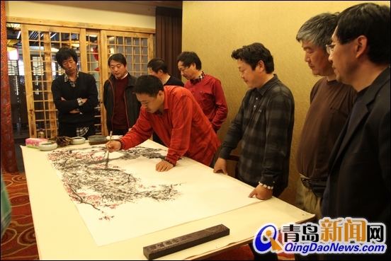 ????2012年4月21日,青島閩江三路閩清閣高朋滿座,名家薈萃一堂,原來島城著名的名山水畫家葛濤先生及北京畫家一行做客青島閩清閣現場書法和繪畫,吸引眾多島城喜歡和熱愛藝術的市民前往閩清閣觀摩學習與交流!