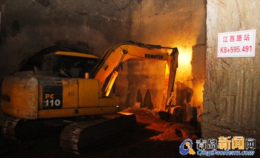 據中鐵十九局青島地鐵一期工程(3號線)土建05標項目總工程師樊延祥介紹,目前江西路車站施工豎井、橫通道開挖、支護施工已全部完成,江寧區間自2011年6月22日開工以來,江寧區間施工豎井及橫通道開挖、支護施工已完成。通俗來說,江寧區間開挖分兩條線,這左右線就是未來地鐵的進站“車道”和出站“車道”。目前左線開挖支護完成330米,右線開挖支護完成356.25米。
