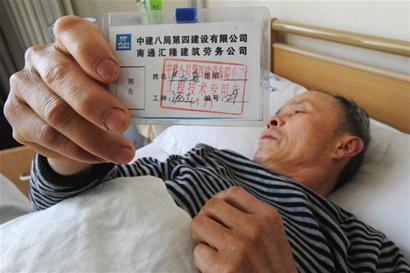 老漢工地摔傷被棄醫院沒人管 包工頭失蹤 在保利小區的工地上干瓦工,由于雨天濕滑,盧云喜一腳踩空,從腳手架上摔了下來,重重地坐到了地上,結果被摔成胸椎爆裂性骨折,原本計劃是24日做手術,但由于包工頭遲遲不交錢,手術時間一拖再拖,昨天,包工頭竟稱老盧傷得不重,要他趕緊轉院回家靜養。“我們在這要錢都那么費勁,回家就更找不到人了?!弊蛱?,盧云喜的弟弟稱,包工頭已經不再接他的電話。 揪心