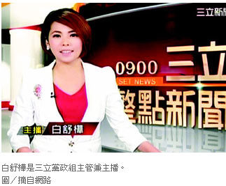 白舒樺則長期跑民進黨采集新聞,2010年選舉時專責聯絡蘇貞昌陣營,與蘇幕僚熟稔,民進黨人士私下餐會,白也會露面。民進黨人士透露,上月24日深夜有人目睹李、白在臺北西門町“阿財虱目魚店”共享宵夜,當時白剛與記者男友分手不久,但李辯稱,因白舒樺夜班,兩人才有幸湊在一起。(記者 李帥)