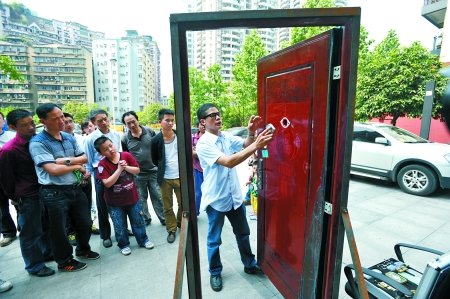 昨日上午10點(diǎn)左右,沙坪壩區(qū)石碾盤(pán)一小區(qū)門(mén)口、防盜公益宣傳處,眾多市民冒雨見(jiàn)證了羅永正用錫箔紙“秒開(kāi)”房門(mén)的演示。