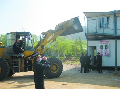 曾經有人在文昌路公交站旁建起地基,被李滄城管執法人員及時制止,不想剛過五一小長假,此處一下子多出一個二層“小別墅”。5月2日上午,執法人員依法對此處移動板房實施強拆。 5月2日上午9時,李滄城管執法局湘潭路中隊執法人員來到文昌路364總站,在該公交站旁,記者看到了一個雙層的板房建筑,雖然是板房,但做工非常精致,堪稱一個“小別墅”。共計200多平方米,門窗齊全,一樓一間為居住,一間為辦公場所,辦公大廳落地玻璃門很上檔次,二樓二間房每間的窗戶都有防盜網。 “這個地方我們之前來制止過,那時候還沒有這個板房,現在這個板房就是一夜之間出現的。”經查,這處違法建筑是當事人張某,趁五一放假的夜間將整體早已做好的“二層樓”用吊車移到此處,想利用周邊場地停車方便建一個自動洗車場,這處二層“別墅”用于辦公和工人住宿。早在幾天前湘潭路中隊的執法人員在此路段巡查時就發現有人在這壘磚,一看就是準備在此搭建臨時性板房那種地基,執法人員當場就對違法行為進行了拆除,責令當事人改正把場地清理干凈,沒想到張某仍報著僥幸心理,覺得在五一節假期而且還是晚上把已建好的“別墅”吊過來,就不會有什么事,結果還是被拆除清走。 據介紹,隨著文昌路的建成通車,在文昌路沿線逐步拆除了一些歷史遺留的違法建筑達一萬多平方米,對于新增在建的違法建筑發現一處將拆除一處。(宋新華 于佳立) |