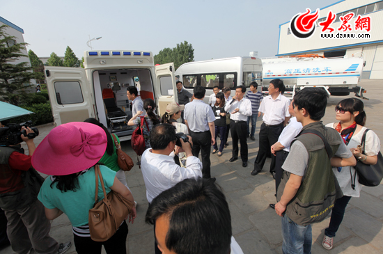 中通客車控股股份有限公司相關負責人向采訪團介紹了其公司生產的多功能急救車。(盛堃 攝影)